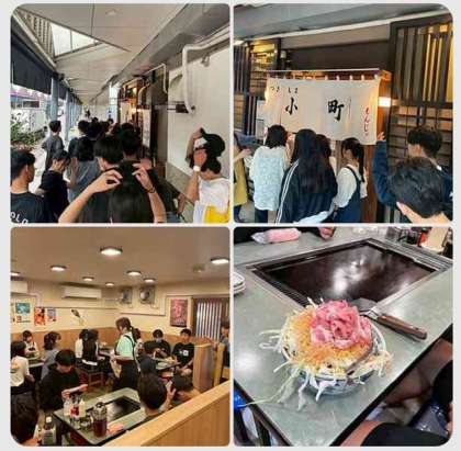 人生初もんじゃ焼きの生徒もたくさん。おいしく焼けるかな?