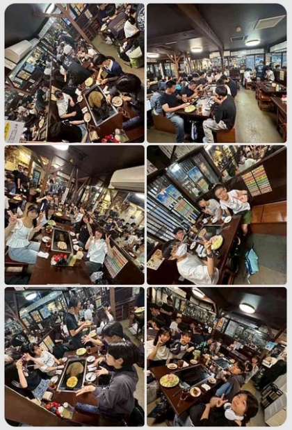 もんじゃ焼きの前にお好み焼きと、焼きそばと美味しそうに食べてます!