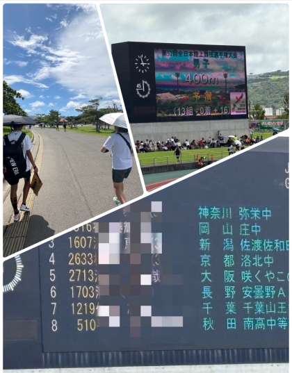 本日、全国大会の男子400m予選に出場し、記録は52,41でした。惜しくも予選敗退となりましたが、全国という大舞台で堂々と走り切り、素晴らしい健闘を見せてくれました。