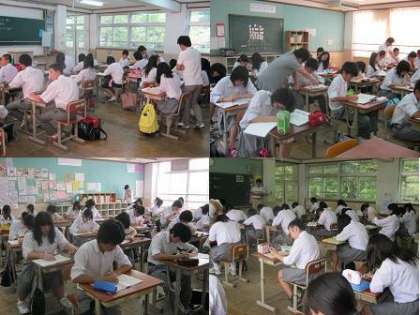 夏季大会もほぼ終わり、運動部は1・2年生が中心となって活動しています。そんな中、今日から5日間、午前と午後の学習会がスタートしました。各自が課題を持ってきて真剣に取り組んでいます。特に午前中の3年生は、2教室がほぼ埋まるくらいの参加者でした。「熱い夏!」です。(写真は上から順に3年・2年・1年の学習会のようすです。)