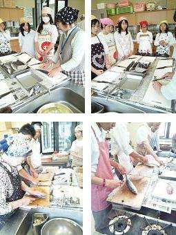 星鹿地区です。さつま揚げ作りです。アジを3枚におろして、下ごしらえ。「普段見られないような?真剣な顔…」だそうです。