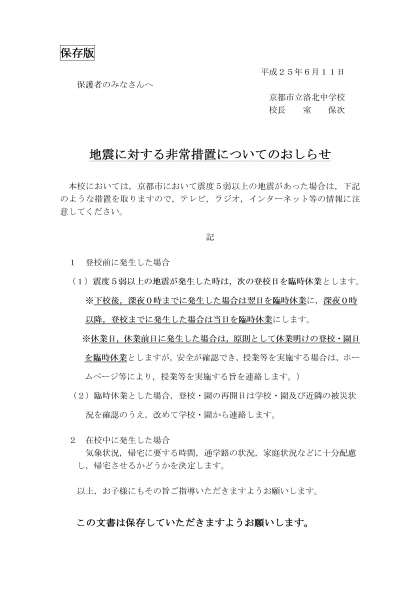 台風・地震に対する非常措置について