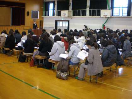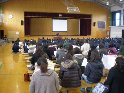 その後、保護者対象に本校の進路指導主事より公立高等学校の入試制度や私立高等学校の受験について、さらに、進路決定までの日程などを説明しました。