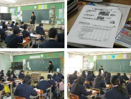 5限に2年生は職業講話があり、講師としてサービス業や病院・保育分野などから10人の方に来ていただきました。「働く」ということについて、それぞれの方の仕事の内容、仕事の魅力と厳しさ、仕事に対する心構えなどを中心にお話していただきました。なかには、実際に全員で声を出す練習をしたところもありました。1月のチャレンジ体験を2ケ月後に控え、働くことの厳しさ・やりがいなどを感じることができたでしょうか。