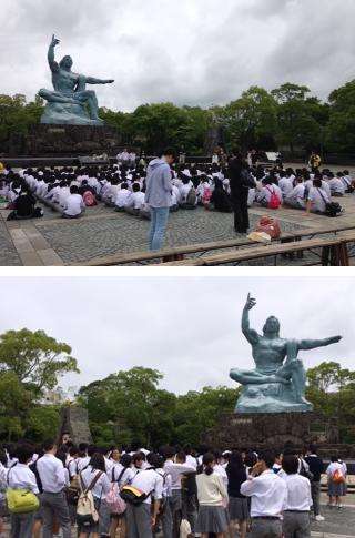 平和セレモニーです。みんなが作った千羽鶴も捧げました。この後、長崎市内とも別れて、松浦へ向かいます。途中で昼食休憩をとります。