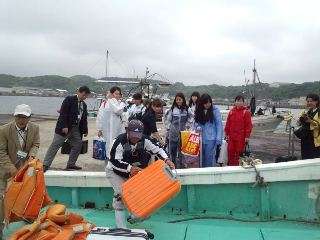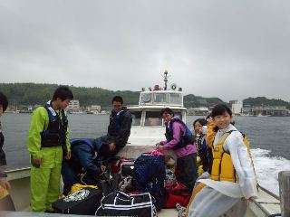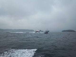 松浦着。海上タクシー(漁船)で青島へ…。