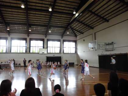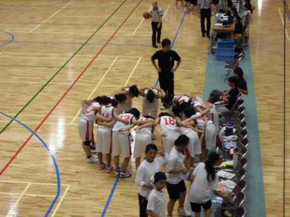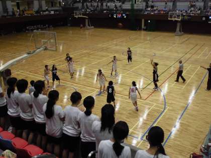 7月20日(日)、大宅中学校体育館にて女子バスケットボールの初戦が行われました。相手チームは大宅中学校でした。相手にとっては、ホームの体育館でした。条件的には厳しかったのですが、速攻が見事に決まり、一時期は10点以上をリードしました。しかし、勝負はわからないもの・・・。相手が後半挽回し、とうとう同点のまま終了のホイッスル。続いて、3分間の延長に入りました。ここで、本校女子バスケット部の神髄である粘りが出ました。ついに延長戦終了の笛が鳴り、涙の勝利となりました。勝つことでしか学べないこともあります。この勝利の意味をかみしめてください。