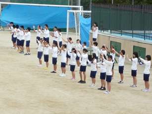 昨日の合唱練習に続き、今日から体育祭で発表する集団演技の練習と展示の製作も始まりました。どちらも学年の枠を超えの取り組みです。グランドの割り当ては赤組でした。3年生のリーダーが演技を披露した後、いろいろな動きの確認をしていました。ダンスに動きと、リーダーたちのもとこれからしっかり練習していきましょう。