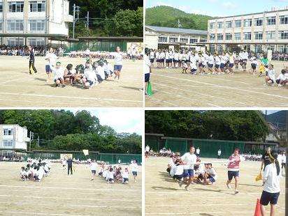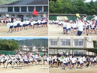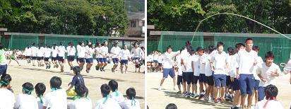 縦割り競技のバンブーサーフィン・波乗りジョニー・大縄跳びのようすです。
