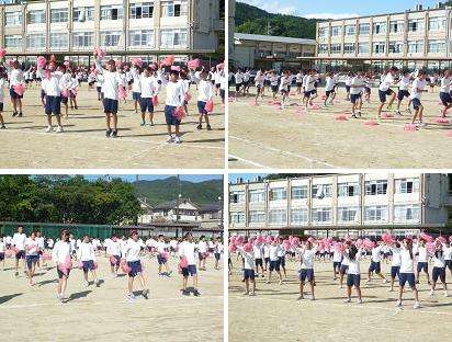 赤組の集団演技です。