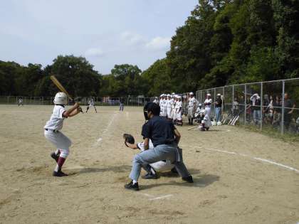 10月12日(日)、横大路運動公園グラウンドにて、野球の市内決勝トーナメント2回戦の試合が行われました。相手校は、西京高校附属中学校です。