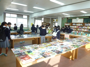 放課後、図書館において選書会がおこなわれました。終学活・掃除の終わった人が、図書館に集まってきました。入口でもらった付箋を手に、図書館に入れてほしい本を選んでいました。今年の選書会では、どんな本にたくさんの付箋がつくでしょうか。結果が楽しみです。