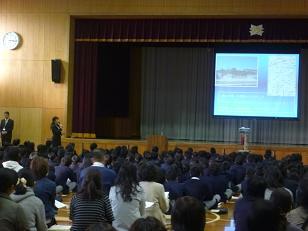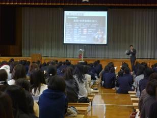 本日午後2時30分より体育館にて進路説明会がありました。前半は3年生も一緒に私立高等学校と公立高等学校についてのお話を聞き、後半は保護者の方を対象に、公立高等学校の選抜制度についての説明を本校の進路指導主事よりさせていただきました。お忙しい中150名を超える保護者の皆様にお越しいただきました。ありがとうございました。本日欠席のご家庭には、明日以降お子たちを通して資料をお届けさせていただきます。