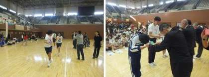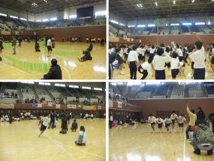 21日に島津アリーナ京都(府立体育館)で行われた育成学級の合同運動会、6人全員が元気一杯に参加できました。本校は緑組です。入場行進では、本校のU君が色の旗を持って色の先頭で堂々の行進をしました。競技では、50m走・100m走・200m走、レクリエーション走、玉入れ、フォークダンス、リレー等に出場して練習の成果を存分に発揮してくれました。(特に100m走でMさん、レクリエーション走AでK君・Sさんが見事1位でした。)皆さんお疲れ様でした。