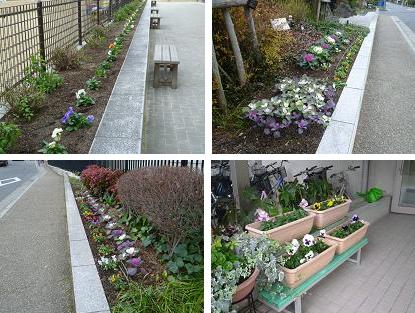 下の写真は、グリーンベルトやテニスコート南の花壇のようすです。RGVの皆さんが、パンジーや葉牡丹を植えてくださいました。ひと足早い新年に向けての準備をしていただきました。RGVの皆さん、今年も一年間大変お世話になりました。