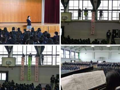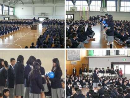1年生は入学3日目。5限に体育館で新入生歓迎会がありました。1年生の入場後、歓迎の出し物としてダンス、そのあとに歓迎の言葉と2・3年生の合唱と続き、1年生の各クラスに学級ボール2個とプロッキーがプレンゼントとして贈られました。最後に新入生代表からの言葉があって歓迎会は終わりとなりました。1年生の皆さん、先輩たちと初めて一堂に会してみてどうでしたか?