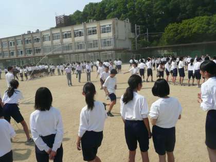 今日の6限の学活の時間に大縄跳びの練習をしました。当日は2分間でのべ回数で競うことになります。ただ今日は今年一番の暑さになったので少し疲れました。本番は天気が晴れて頑張れたらと思います。