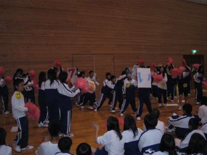 体育館では、各クラスの学級目標発表会もにぎやかに行うことができ、クラスや学年の団結がいっそう深まりました。