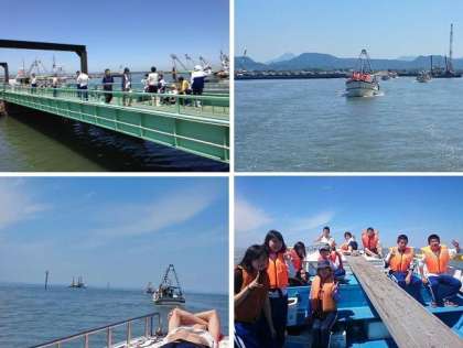 午後からの活動です。漁業体験Bチーム、快晴の中、出港しました。