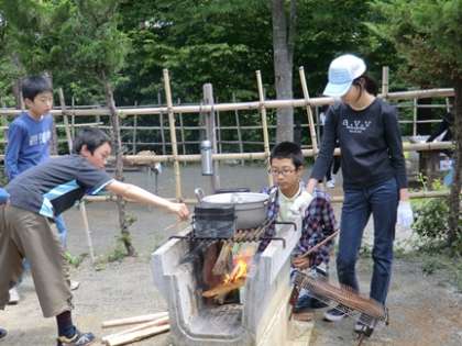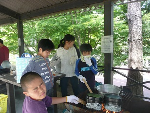 野外すいはんはうまくいった班がほとんどです。オリジナルメニューのコンテストが楽しみです。
