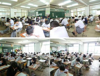 洛北確認テストが始まりました。2限に各学年を回ってみました。写真は上から1年生・2年生・3年生の順です。