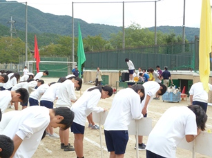 薄曇りの中、昨日できなかった体育祭の予行を6限目からおこないました。開閉会式の流れの確認、位置どりの確認もかねてエール交換、縦割り競技(召集から実際の競技まで)をおこないました。時間の関係でリレーは試走することはできませんでしたが、召集はおこなったので、メンバーの確認はできたのではないでしょうか。あとは、1週間後の本番です。よい天気のもと実施できたらいいですね。