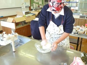 テストが無事に終わって、午後の学校は部活動が再開され、活気にあふれています。午後から、調理室で活動中の家庭科部へおじゃましました。ホームページや学校だよりでも紹介していますが、家庭科部は18日(日)に、東京で行われるオレンジページ主催の「第4回ジュニア料理選手権」の2次審査を控えています。今日は、2次審査に向けて、決められた時間の中で調理ができるように練習していました。万全の状態で18日(日)を迎えてください。応援しています。