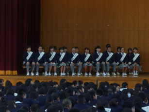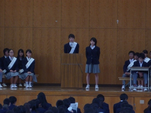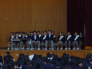6限、体育館にて生徒会本部役員選挙の立会演説会がおこなわれました。舞台上には、写真のように選挙管理委員と20人の立候補者・その応援弁士が勢ぞろいです。演説は、生徒会長候補から候補者・応援弁士の順におこわわれました。今年は、女子副会長・2年生会計・1年生書記・生活委員長・体育委員長・文化委員長・図書委員長が投票です。体育館では立候補者と応援弁士の話を、立候補者の公約集を手にみんな真剣に聞いていました。演説会終了後、教室へ戻って投票をおこないました。責任を持って一票を投じることができたでしょうか? 開票結果は明日発表されます。