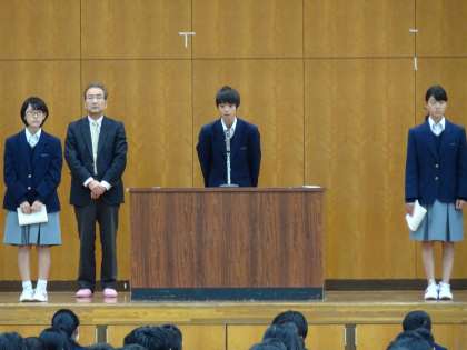 前期の役員さんの退任式があり, 一人一人, 挨拶をしていく姿はさすが3年生, みなさん堂々としていて立派でした。