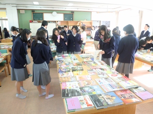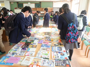 テスト終了後の12時15分から、今年度2回目の選書会がありました。図書館の机の上には、希望のあるジャンルの中から本屋さんと相談したものや、他校の図書館やカタログを参考にした本が並んでいました。参加者は、入り口で付箋を2枚もらって購入希望図書に貼っていきました。今回も、付箋の多い本を予算内で購入するそうです。また、冬休みまでに配架する予定だそうです。どんな本が配架されるのか楽しみですね。