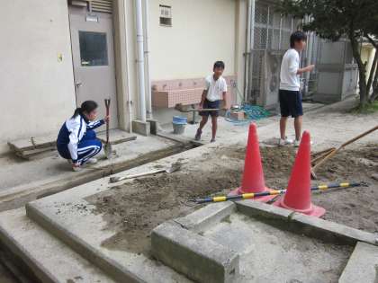 学校祭の取り組みが進む中,各学年の有志が学校美化のためのボランティア活動に取り組んでいます。