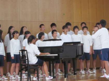 午後からは,3年生の合唱のプレコンクールが行われました。これまでの学校祭の取り組みをリードしてきた3年生,少々疲れがたまってきたのか。それとも,本番を意識してあえて抑えたのか。3年生の本来の力が発揮されていなかったように感じました。きっと本番には,全校をあっと驚かせるような演奏を披露してくれることでしょう。1年生や2年生は,3年生の合唱を楽しみにしています。