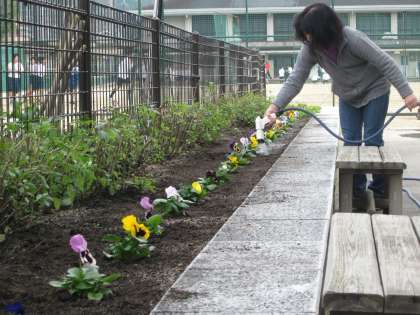 今回は,パンジーと葉ボタンが新たに植えられました。参加いただいたRGVのボランティアの皆様お疲れ様でした。装い新たに整備されたグリーンベルトは,生徒の心を和ませてくれることでしょう。ありがとうございました。