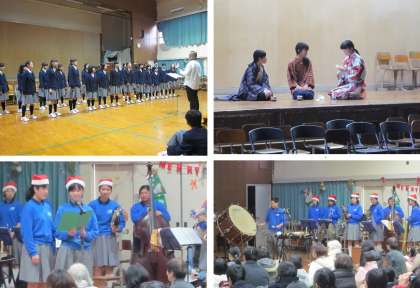 洛北中学校の恒例のクリスマスコンサートが行われました。すべての文化系部活動が協力して開催されるようになって2年目となりました。会場の設営も昨年度に比べを華やかで立派なものとなりました。会場の設営や飾りつけは,美術部,家庭科部,科学部が担当してくれました。