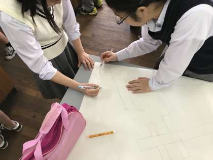 各クラス個性のあるデザインができたようで,下書きを始めたり早いクラスは色塗りも始まっていました。