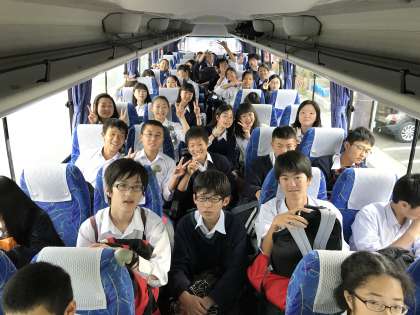 京都駅に向かうバスの中の様子です。無事に京都駅に到着しました。これから14番ホームに向かい,8時3分発のぞみ99号に乗車します。