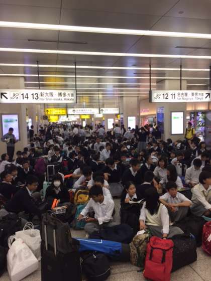 10クラスの大集団,京都駅で他のお客さんに迷惑をかけることなく,整然と団体行動が取れました。