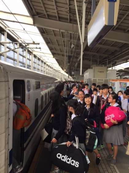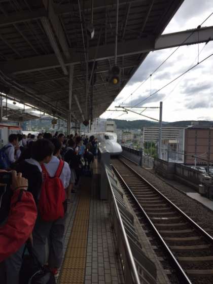 京都駅のホームで新幹線に乗り込む様子が送られてきました。あと,30分後,10時47分,のぞみ99号,博多駅到着予定です。