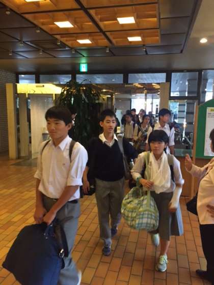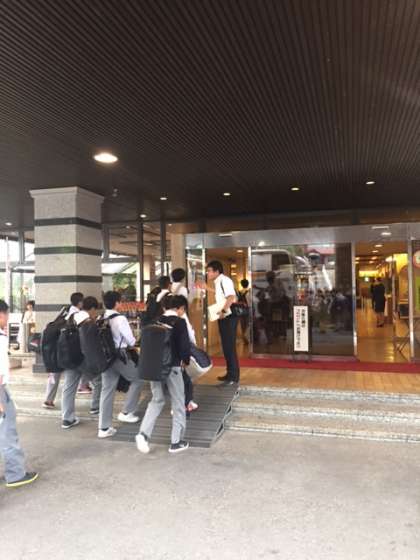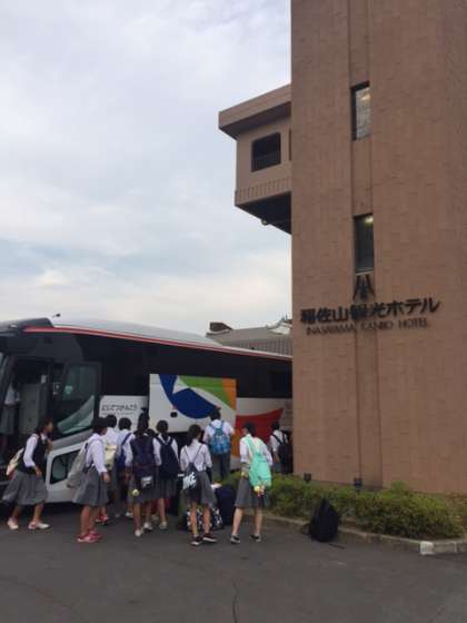 早朝6時の学校集合,新幹線で博多へ,太宰府天満宮訪問,長崎平和公園での平和記念セレモニー,そして班別平和研修と充実の一日を終え,ようやく1日目の宿舎に到着しました。