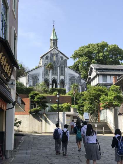 班別研修が始まり一時間が経とうとしています。各班,市内を歩いたり路面電車に乗ったりして移動しています。それぞれの班は,課題や目的を持ってスケジュールに従い,班別行動しています。