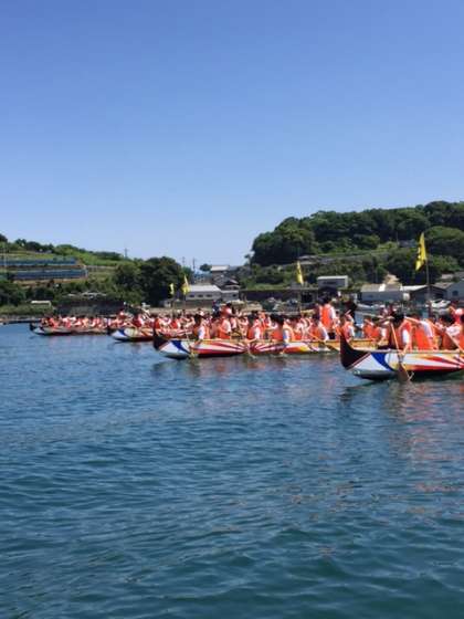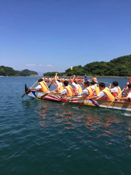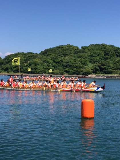 白熱するペーロン大会。9組がトップでゴールするシーンです。気持ちいい汗をかきました。