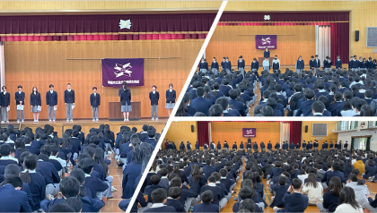 生徒会は学校生活をより良くするために全校生徒の声を形にする大切な役割を担っていることや、全校生徒が生徒会の一員である意識を持ち、互いを尊重し協働しながら高め合い、未来を創造していく力を育んでほしいとのメッセージを伝えました。