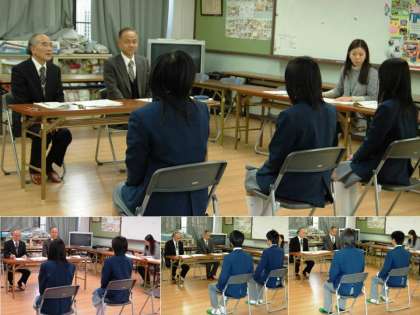 受験する高校やコースごとのグループで、礼儀や言葉遣いなど基本的な作法から具体的な志望動機等の質問への受け答えなどを模擬演習します。