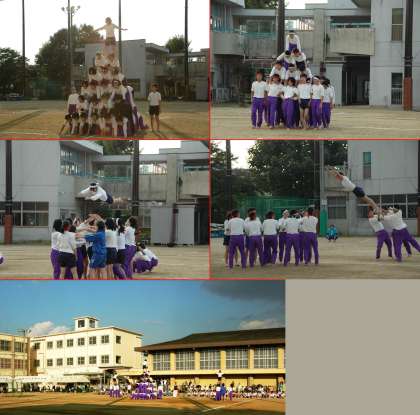 「絆」というテーマで、3年生55名が互いを信じて高め合い、何度となく「演技の完成はとても無理!」と投げ出しそうになりながらも、全員で励まし合いながら高い難易度の組み立て体操に仕上げました。迫真の演技に会場はシーンとなり、演技終了後は生徒同士が大成功を抱き合って喜び合う感動のシーンが見られ、指導の先生や保護者の方も感動の涙々・・・。信頼と絆で結ばれたすばらしい集団として3年生が大きく成長した瞬間です。