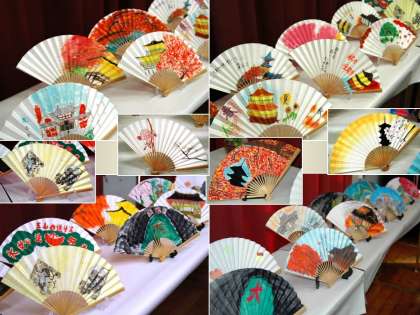 1年生が伝統工芸学習で製作しました京扇子が完成しました。校内に展示しています全作品を紹介します。