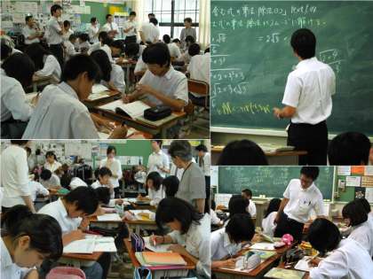 本日(29日)、本年度採用の数学科教員8名を対象に、3年2組で「根号を含む式の乗法・除法(3)」という内容で授業を公開し、研究協議を行いました。