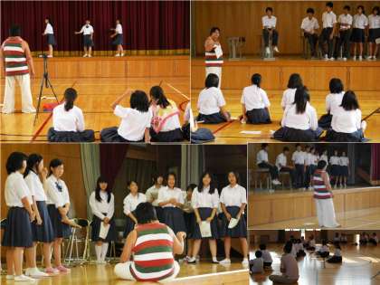 ご指導いただいている三谷さんは、生徒一人一人の個性を尊重しつつも、演劇の基礎・基本を的確で表情豊かに語って下さり、洛東中生の持つ豊かな感性に確かに響いています。