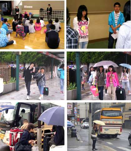 あいにくの雨降りですが,7時30分に生徒20名・引率教職員8名の全員がそろって,バスは一路神戸空港へと向かいました。