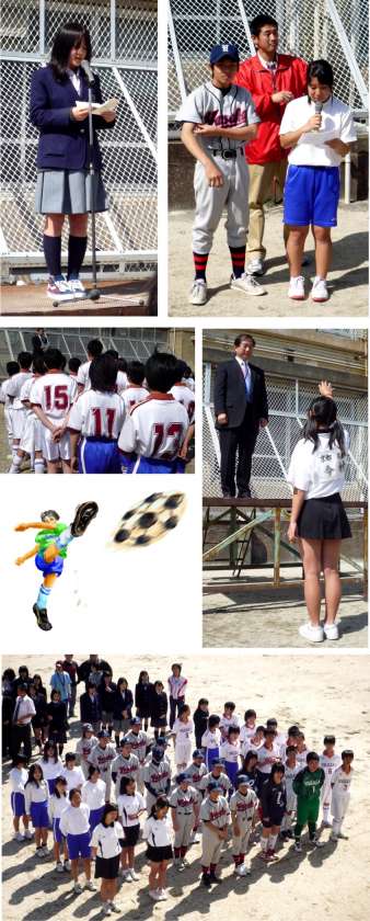 適度な緊張感と「心ひとつに」の和。F.Nanaさん.Jinpei君を始めとする生徒全員のエールに応えて,立派な行進を見せてください。