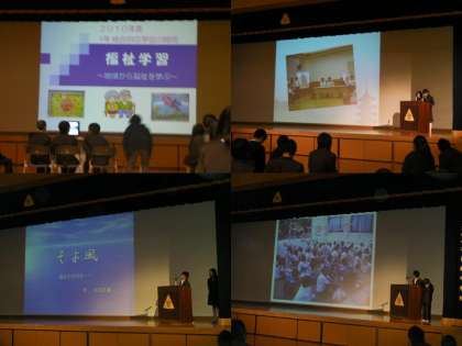 ・1年生の発表は、お年寄りの方との触れ合いから「ゆっくり話す」や「見て聞いてわかる説明の仕方がよい。」などを学び、自分たちの今に1番近いことだと思うから大切だと思いました。2年生の発表では、外国の人とのかかわりは、これから重要になってくるから、改めて大事だと思いました。3年生の「保育」のことは、将来自分たちが親になったときにとても役立つことだから、大事にしていきたいと思います。